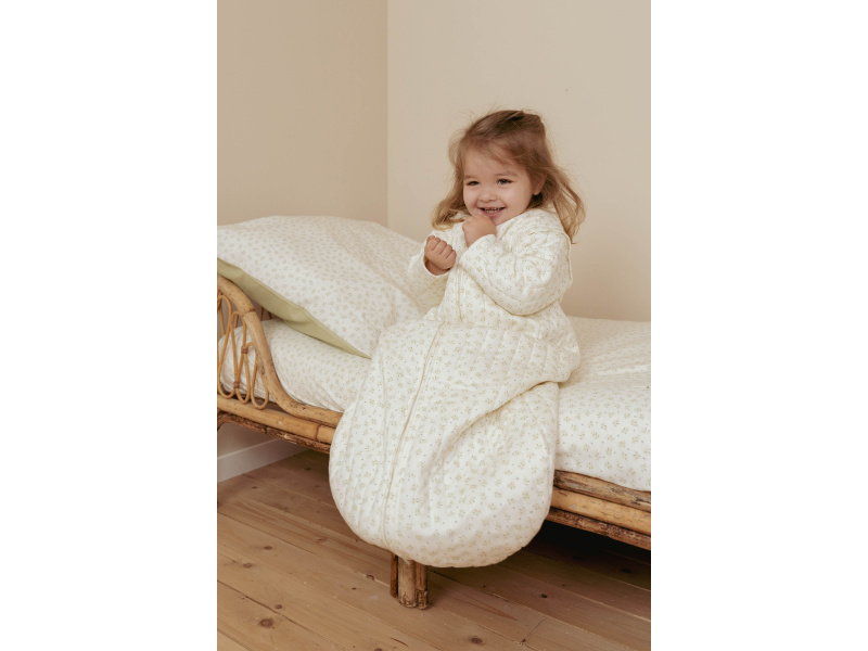 Praktický spací pytel s oddělitelnými rukávy nabízí variabilitu při použití dle počasí a teploty v místnosti. Díky jemné výplni je vhodný pro použití místo peřinky. Spací pytel zajistí, že se dítě v noci neodkope a bude tak po celou dobu spánku v pohodlí a teple bez rizika prochladnutí. Kryté zipy v průramcích umožňují snadné oddělení rukávů, pokud chcete spací pytel používat v teplejším prostředí bez rukávů. Zip na přední straně umožňuje snadné vložení dítěte do spacího pytle i přebalování během spaní. Spací pytel je testován na TOG hodnotu, která určuje hřejivost spacích pytlů a dek. Čím vyšší je hodnota TOG, tím je produkt teplejší. Spací pytel má hodnotu TOG 2,5, jedná se tedy o spací pytel vhodný pro celoroční použití. Spací pytel je součástí designové kolekce textilních doplňků Little Dutch Blueberry Leaves. Složení: 100% bavlna, výplň 100% polyester Vhodné pro děti od 60 do 76 cm (cca od 3 do 9 měsíců).