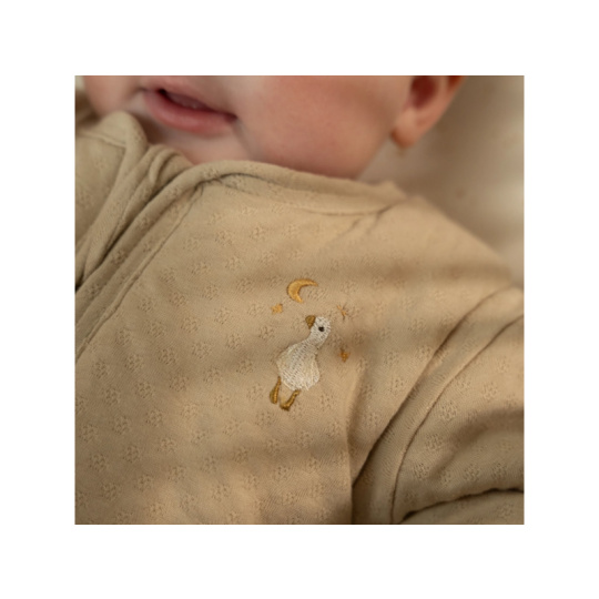 Praktický spací pytel s oddělitelnými rukávy nabízí variabilitu při použití dle počasí a teploty v místnosti. Díky jemné výplni je vhodný pro použití místo peřinky. Spací pytel zajistí, že se dítě v noci neodkope a bude tak po celou dobu spánku v pohodlí a teple bez rizika prochladnutí. Kryté zipy v průramcích umožňují snadné oddělení rukávů, pokud chcete spací pytel používat v teplejším prostředí bez rukávů. Zip na přední straně umožňuje snadné vložení dítěte do spacího pytle i přebalování během spaní. Spací pytel je testován na TOG hodnotu, která určuje hřejivost spacích pytlů a dek. Čím vyšší je hodnota TOG, tím je produkt teplejší. Spací pytel má hodnotu TOG 2, jedná se tedy o spací pytel vhodný pro celoroční použití. Spací pytel je součástí designové kolekce textilních doplňků Little Dutch Newborn Naturals. Složení: 100% bavlna, výplň 100% polyester Vhodné pro děti od 60 do 76 cm (cca od 3 do 9 měsíců).