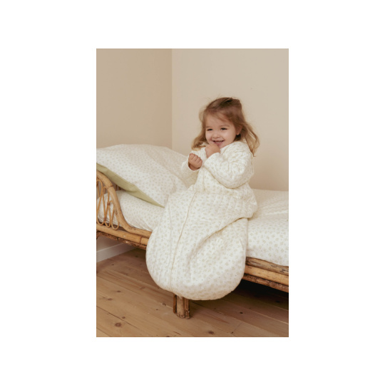Praktický spací pytel s oddělitelnými rukávy nabízí variabilitu při použití dle počasí a teploty v místnosti. Díky jemné výplni je vhodný pro použití místo peřinky. Spací pytel zajistí, že se dítě v noci neodkope a bude tak po celou dobu spánku v pohodlí a teple bez rizika prochladnutí. Kryté zipy v průramcích umožňují snadné oddělení rukávů, pokud chcete spací pytel používat v teplejším prostředí bez rukávů. Zip na přední straně umožňuje snadné vložení dítěte do spacího pytle i přebalování během spaní. Spací pytel je testován na TOG hodnotu, která určuje hřejivost spacích pytlů a dek. Čím vyšší je hodnota TOG, tím je produkt teplejší. Spací pytel má hodnotu TOG 2,5, jedná se tedy o spací pytel vhodný pro celoroční použití. Spací pytel je součástí designové kolekce textilních doplňků Little Dutch Blueberry Leaves. Složení: 100% bavlna, výplň 100% polyester Vhodné pro děti od 76 do 98 cm (cca od 6 do 18 měsíců).