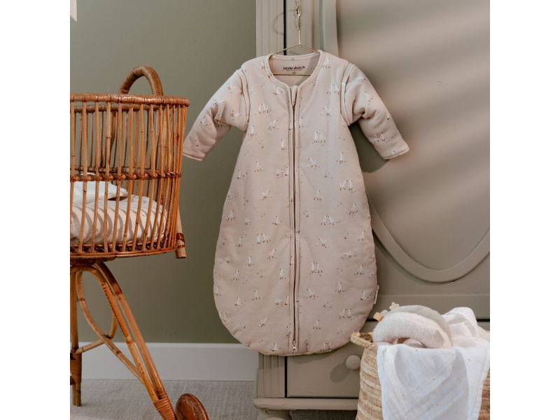 Praktický spací pytel s oddělitelnými rukávy nabízí variabilitu při použití dle počasí a teploty v místnosti. Díky jemné výplni je vhodný pro použití místo peřinky. Spací pytel zajistí, že se dítě v noci neodkope a bude tak po celou dobu spánku v pohodlí a teple bez rizika prochladnutí. Kryté zipy v průramcích umožňují snadné oddělení rukávů, pokud chcete spací pytel používat v teplejším prostředí bez rukávů. Zip na přední straně umožňuje snadné vložení dítěte do spacího pytle i přebalování během spaní. Spací pytel je testován na TOG hodnotu, která určuje hřejivost spacích pytlů a dek. Čím vyšší je hodnota TOG, tím je produkt teplejší. Spací pytel má hodnotu TOG 2, jedná se tedy o spací pytel vhodný pro celoroční použití. Spací pytel je součástí designové kolekce textilních doplňků Little Dutch Newborn Naturals. Složení: 100% bavlna, výplň 100% polyester Vhodné pro děti od 76 do 98 cm (cca od 6 do 18 měsíců).