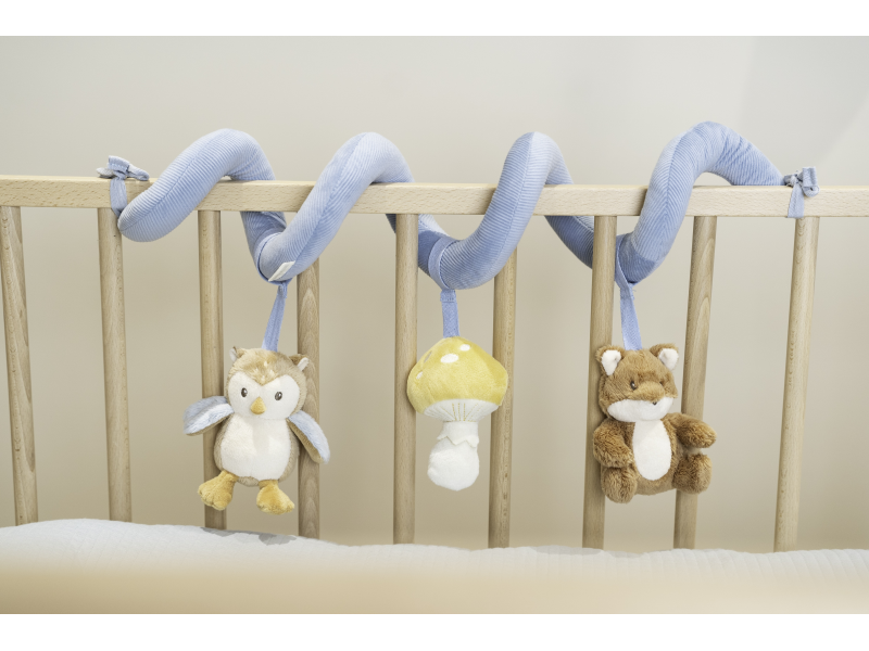 Textilní spirála se zavěšenými hračkami v podobě lišky, sovy a houbičky zabaví vaše miminko v postýlce, kočárku i v autosedačce. Měkké hračky vyrobené z jemného plyše chrastí, šustí a nabízí různé textury pro zkoumání. Hračky stimulují koordinaci ruka / oko dítěte. Spirálu snadno připevníte omotáním kolem bočnice postýlky či madla autosedačky i kočárku. Spirála s hračkami je součástí designové kolekce hraček Little Dutch Forest Friends inspirované životem v lese. Rozměry: 22 x 13 x 12 cm Vhodné pro děti od narození.