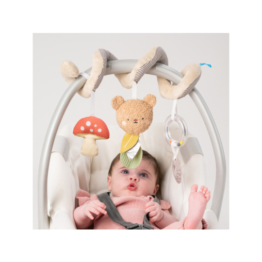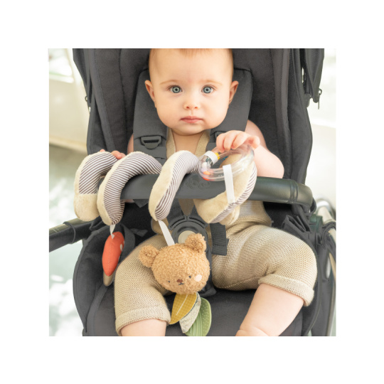 Spirála Taf Toys Bear Hugs je multi-senzorická hračka, která zabaví vaše miminko od narození doma i na cestách. Díky spirálovému tvaru ji snadno upevníte na kočárek, postýlku nebo autosedačku. Pozornost dítěte upoutá kombinace měkkých plyšových hraček s kousátky a chrastítky. Zavěšené hračky z různých materiálů podporují klidné zkoumání rukama i očima a pomáhají rozvíjet první dovednosti během každé procházky i odpočinku doma. pevné uchycení na suchý zip – stabilně drží a nesjíždí plyšový cinkající medvídek chrastící houbička kousátka s různými texturami chrastítko s korálky jemné zvuky a různé textury pro zábavu i zklidnění bezpečné, měkké a odolné materiály vhodné pro miminka Hračka podporuje rozvoj jemné motoriky, koordinace, smyslového vnímání i poznávání příčiny a následku. Údržba: pouze otírejte, neponořujte do vody Vhodné pro děti od narození.