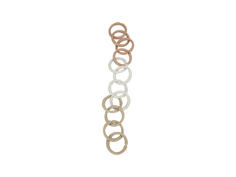 Multifunkční kroužky tvořící po spojení řetěz slouží jako hračka pro děti i jako pomůcka pro připevnění hraček ke kočárku či autosedačce. Dvanáct kroužků vytvoří řetěz ideální délky pro použití v kočárku. Kroužky jsou vyrobené z PP materiálu, který je zcela bezpečný pro zkoumání rukama i ústy dítěte. Balení obsahuje 12 kroužků ve třech barvách. Vhodné pro děti od narození.