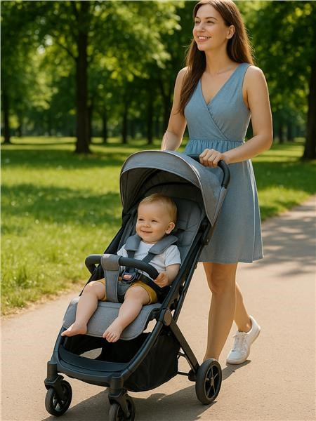 Po složení je kočárek mimořádně kompaktní, praktický a velmi lehký – váží jen 7,4 kg – ideální pro skladování a přepravu, ať už v kufru auta nebo při cestování letadlem. Díky integrované rukojeti jej lze pohodlně táhnout jako kufr.