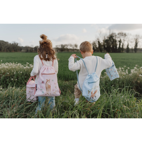 Sportovní pytel potištěný něžnými přírodními motivy je ideálním doplňkem do školy na tělocvik či na sportovní kroužek. Dvojité stahovací šňůrky umožňují nošení jako batoh, díky poutku jej snadno např. zavěsíte na věšák v šatně. Vnější kapsa na zip nabízí prostor pro bezpečné uložení drobností. Uvnitř najdete popisovatelnou jmenovku. Sportovní pytel je součástí designové kolekce hraček a doplňků Little Dutch Forest Friends, inspirované životem v lese. Rozměry: 38 x 29 cm