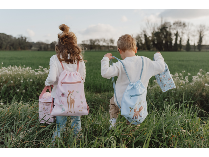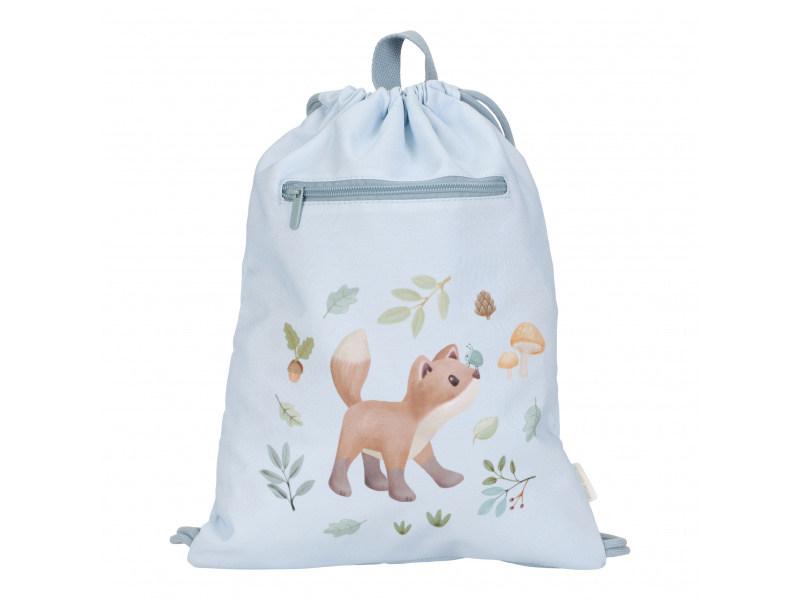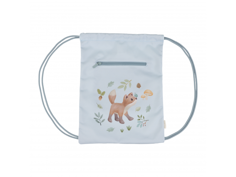 Sportovní pytel potištěný něžnými přírodními motivy je ideálním doplňkem do školy na tělocvik či na sportovní kroužek. Dvojité stahovací šňůrky umožňují nošení jako batoh, díky poutku jej snadno např. zavěsíte na věšák v šatně. Vnější kapsa na zip nabízí prostor pro bezpečné uložení drobností. Uvnitř najdete popisovatelnou jmenovku. Sportovní pytel je součástí designové kolekce hraček a doplňků Little Dutch Forest Friends, inspirované životem v lese. Rozměry: 38 x 29 cm