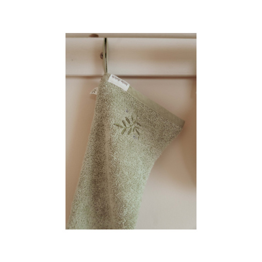 Praktická žínka do sprchy z jemné, 100% organické froté bavlny vám umožní bezpečnější držení miminka během sprchování. Po namočení se měkký froté materiál přilepí na vaši paži a dítě vám tak nebude na ruce klouzat. Žínka je součástí designové kolekce textilních doplňků Little Dutch Blueberry Leaves. Složení: 100% organická bavlna Rozměry: 42 x 14 cm