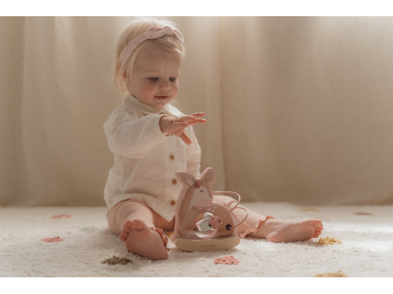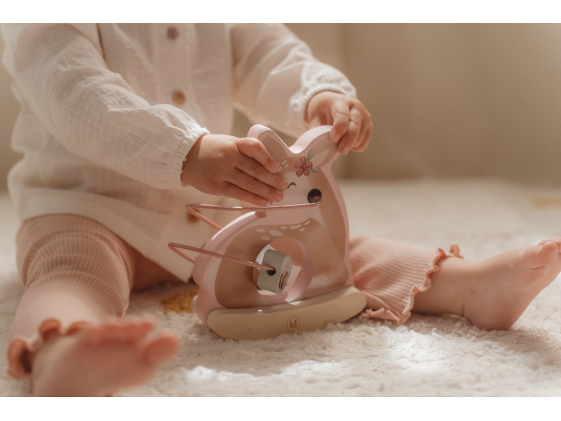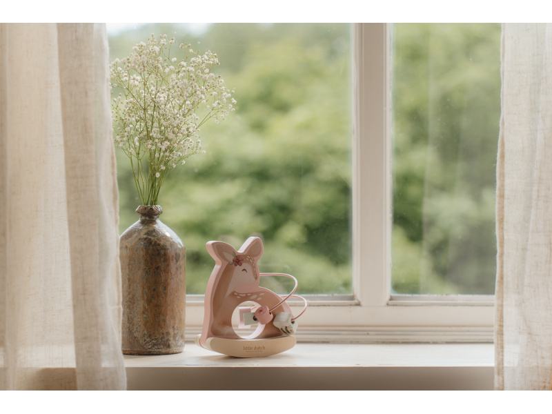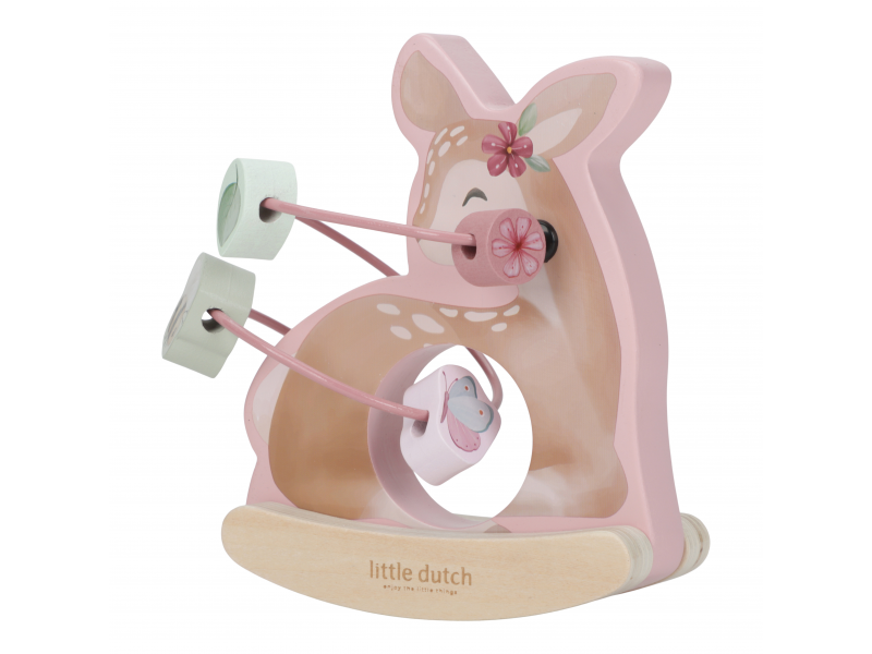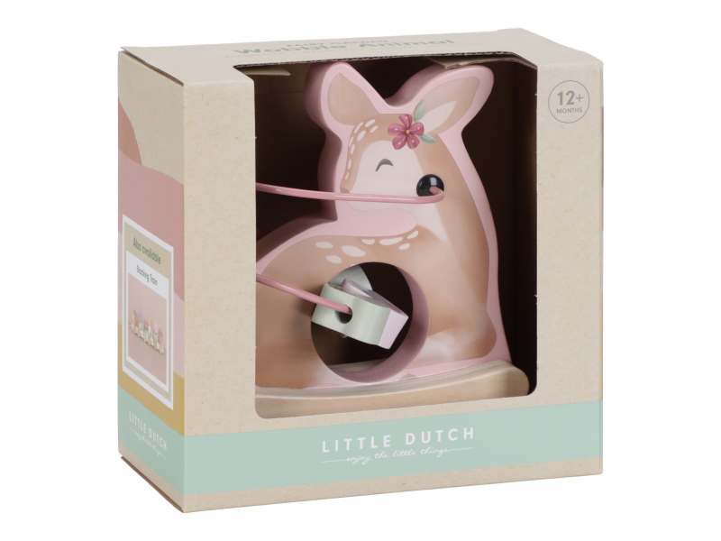 Dřevěná hračka v podobě něžné srnky se po postavení na podlahu či stůl jemně houpe a přitom se kolem ní na spirále pohybují posuvné dřevěné korálky s potiskem včelky, motýla, kytičky a lístku. Hračka je ideální pro rozvoj koordinace ruka / oko dítěte slouží i jako krásná dekorace v dětském pokoji. Hračka je součástí designové kolekce hraček a doplňků Little Dutch Fairy Garden inspirované životem na zahradě. Vyrobeno z dřeva certifikovaného FSC. Rozměry: 13,7 x 8,5 x 15,3 cm Vhodné pro děti od 12 měsíců.