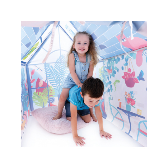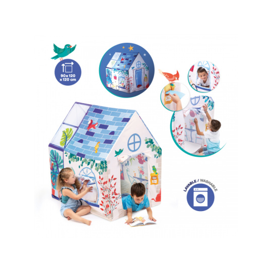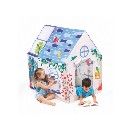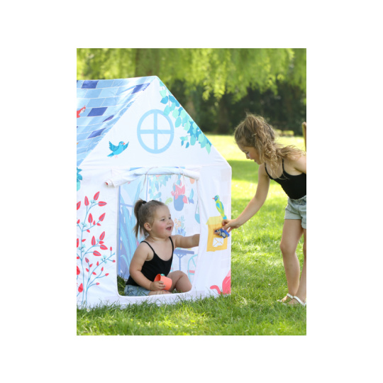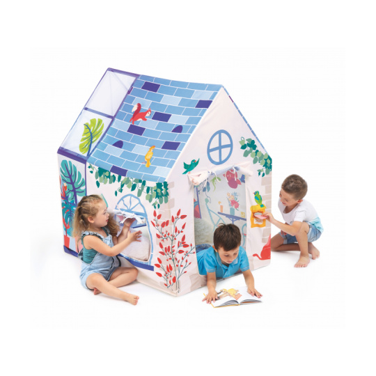 Hrací stan pro malé snílky a objevitele je ideálním místem pro dětské hry na doma i na zahradě. Děti si v něm vytvoří vlastní svět plný fantazie – ať už si hrají na obchod, čtou knížku nebo jen odpočívají ve svém útočišti. Domeček jako opravdový - velké dveře, okénko, poštovní schránka i větrací otvory vytvářejí útulné prostředí, které podněcuje hru na role a posiluje dětskou samostatnost. Stan má stabilní konstrukci, ale zároveň se jednoduše sestavuje a skládá. Po hře ho snadno uložíte za dveře nebo pod postel. Ideální i do menších prostor. Rozměry: 90 × 120 × 120 cm Složení: 100 % polyester, PVC konstrukce Údržba: potah lze prát v pračce Vhodné pro děti od 2 let.