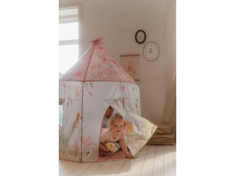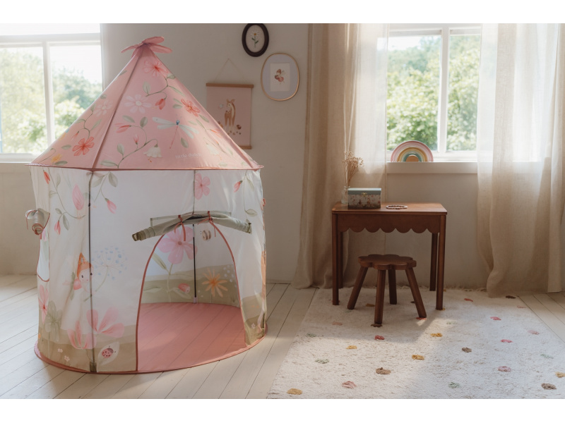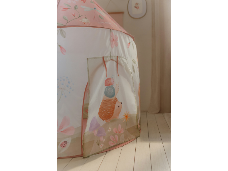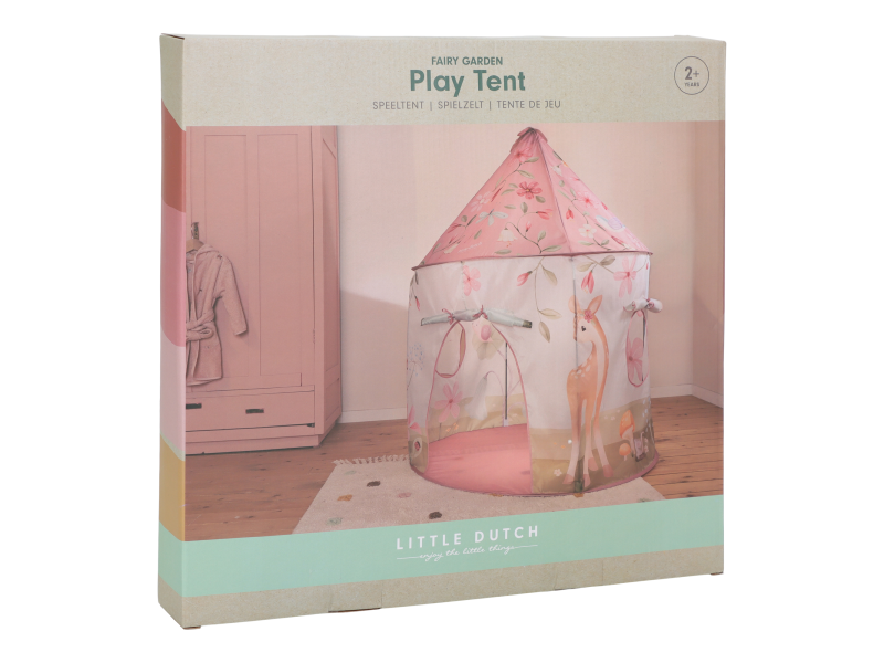 Úžasný stan je skvělým místem pro všechny děti, které mají rády schovávačky a svůj kouteček jen pro sebe. Stan s krásným potiskem motivů ze života na zahradě bude vděčným pomocníkem při hrách a rozvíjení fantazie vašich dětí. Stan je vybaven dvěma okénky a vchodovým závěsem. Stan je součástí designové kolekce hraček a doplňků Little Dutch Fairy Garden, inspirované životem na zahradě. Určeno pouze pro použití v interiéru. Rozměry: 105 x 105 x 125 cm Výška stanu: 125 cm Hlavní materiál: 100% polyester Vhodné pro děti od 2 let.