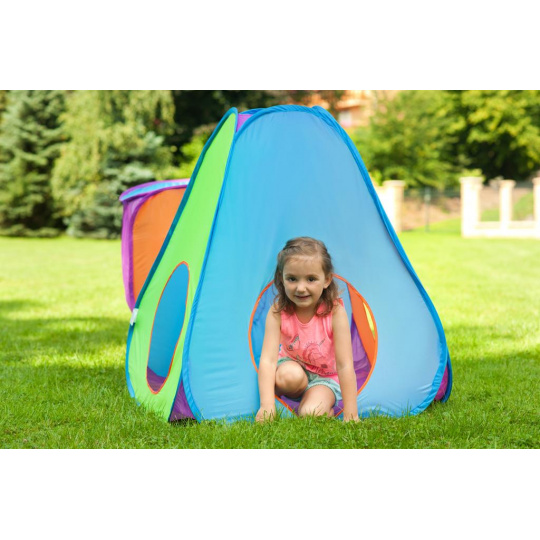 Krásný dětský stan Baby Mix 3v1 je trojdílnou sadou, skládájící se ze dvou samostatných stanů propojených plazícím tunelem. Tunel se do stanů jen zasune, není na pevno připevněn, lze s ním libovolně manipulovat. Otvory zajišťují dobrou cirkulaci vzduchu. Je vyrobený z kvalitní a pevné látky. Určeno pro děti od 3let.