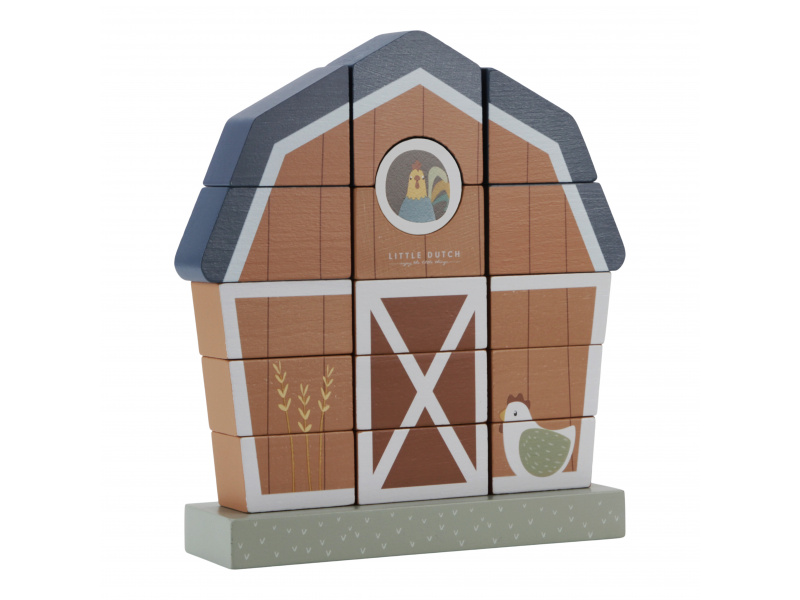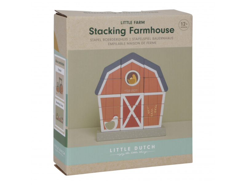 Originální stohovací stavebnice je tvořena základnou, na kterou se navlékají dřevěné dílky. Navléknutím dílků ve správném pořadí dítě postaví budovu farmy. Hračka pomáhá rozvíjet koordinaci oko-ruka a jemnou motoriku vašeho dítěte. Farma může sloužit i jako krásná dekorace v dětském pokoji. Hračka je součástí designové kolekce hraček a doplňků Little Dutch Farma. Vyrobeno z dřeva certifikovaného FSC. Rozměry: 20,5 x 18,5 x 5,5 cm Vhodné pro děti od 12 měsíců.