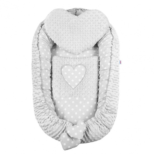 Luxusní hnízdečko s polštářkem a peřinkou New Baby z Minky Srdíčko šedé