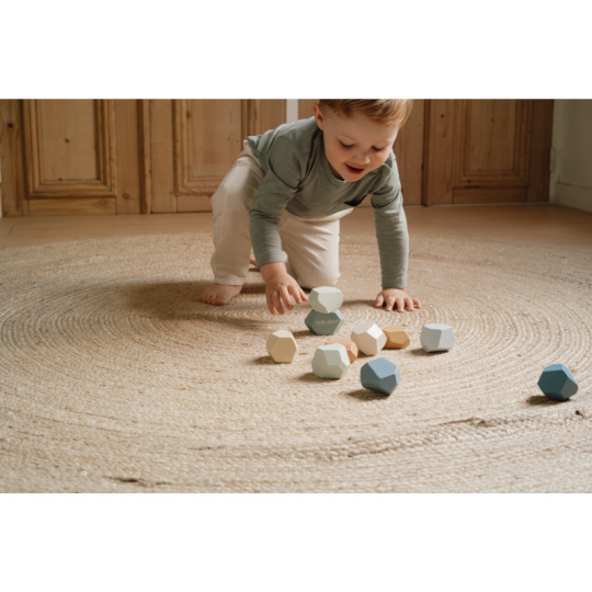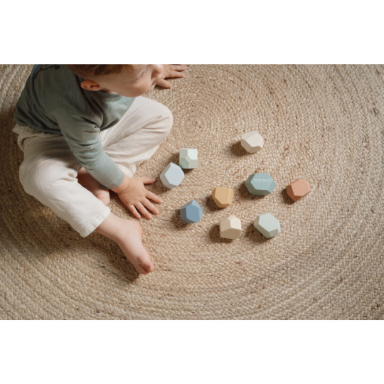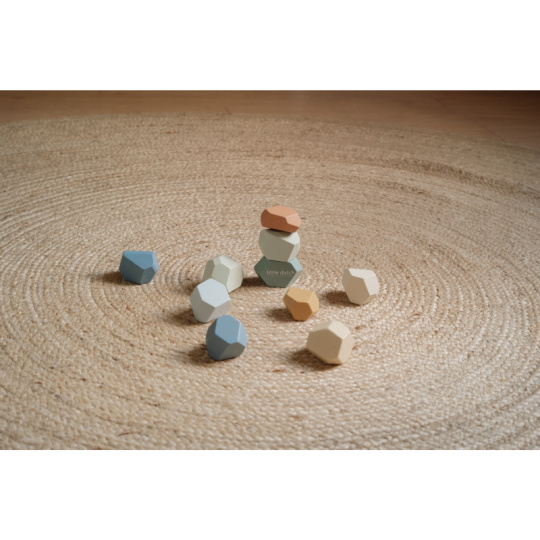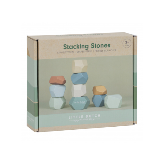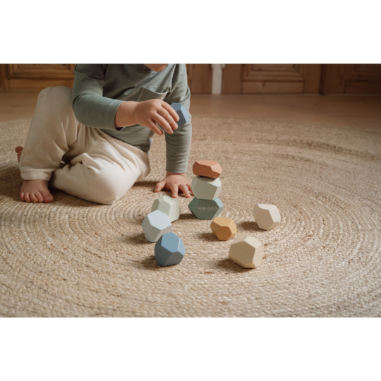 Balanční dřevěné kameny v krásných pastelových barvách podporují rozvoj jemné motoriky a koncentrace. Každý kámen má jiný tvar a při jejich skládání na sebe se dítě učí trpělivosti, soustředění a kreativnímu myšlení. Kameny je možné využít i pro první počítání a rozlišování barev. Hračka je součástí designové kolekce hraček a doplňků Little Dutch Forest Friends inspirované životem v lese. Vhodné pro děti od 2 let.