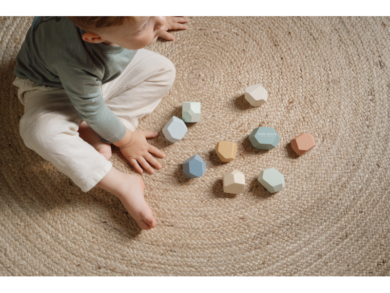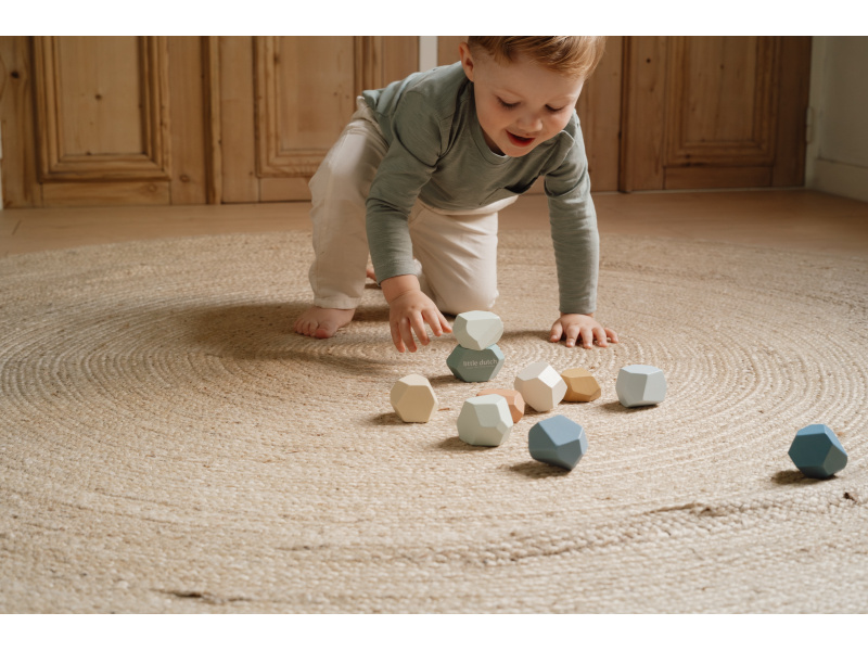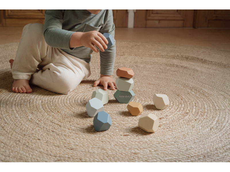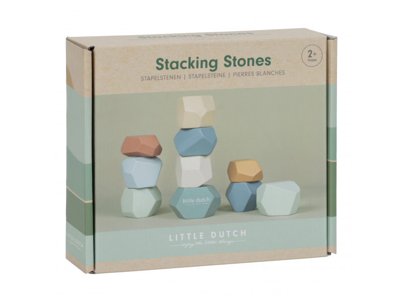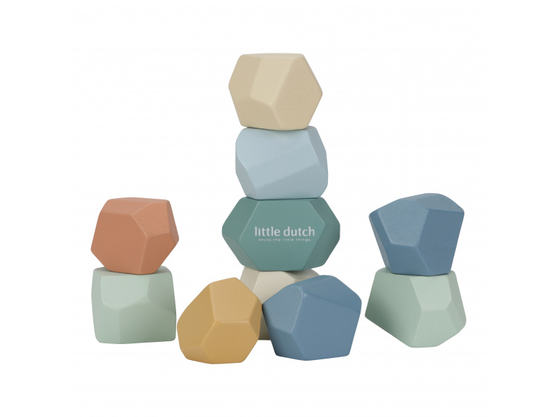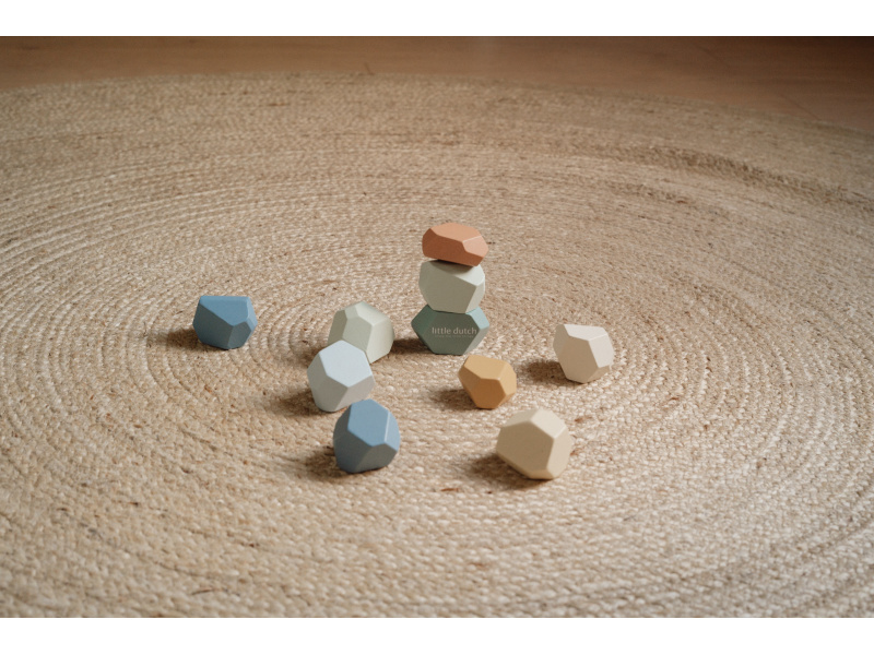Balanční dřevěné kameny v krásných pastelových barvách podporují rozvoj jemné motoriky a koncentrace. Každý kámen má jiný tvar a při jejich skládání na sebe se dítě učí trpělivosti, soustředění a kreativnímu myšlení. Kameny je možné využít i pro první počítání a rozlišování barev. Hračka je součástí designové kolekce hraček a doplňků Little Dutch Forest Friends inspirované životem v lese. Vhodné pro děti od 2 let.