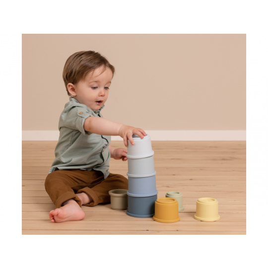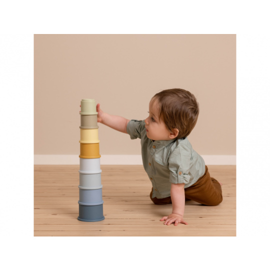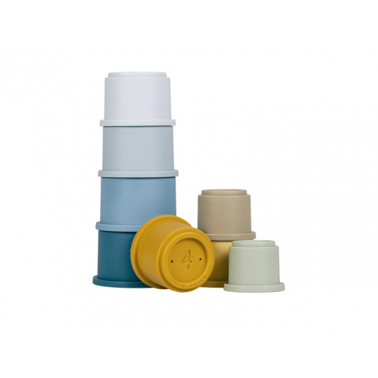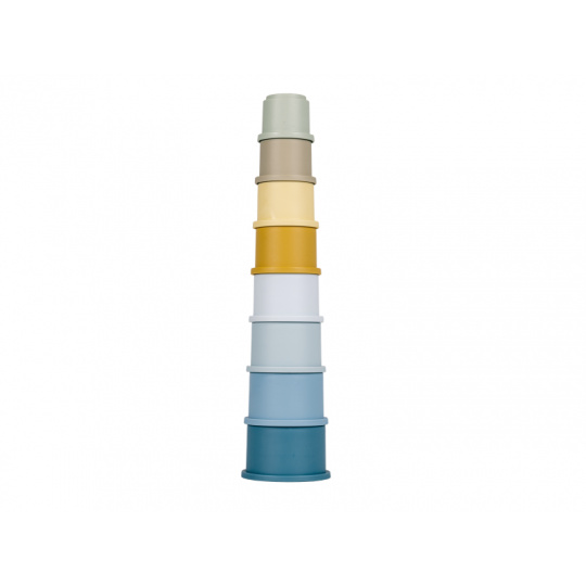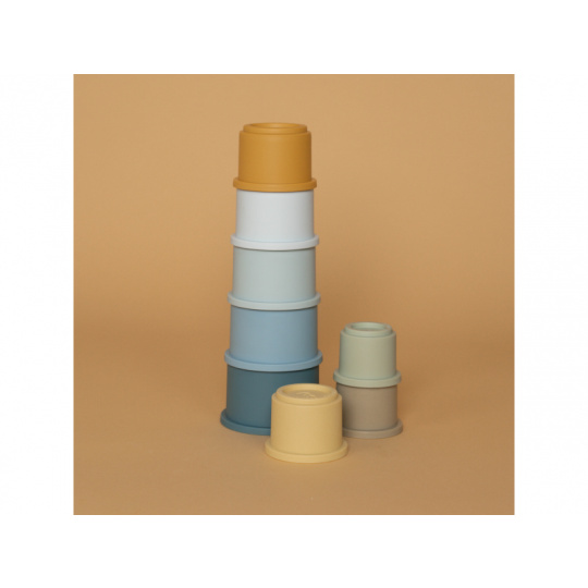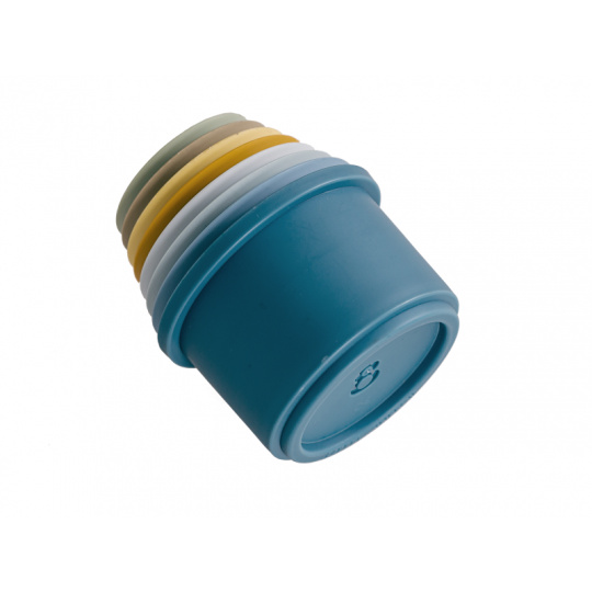 Sada kelímků v krásných pastelových barvách nabízí mnoho možností pro hraní doma, v koupeli i venku na pískovišti. Co může být zábavnější, než postavit vysokou věž a pak ji jedním mávnutím ruky zbořit! Kelímky mají na spodní straně čísla 1 - 8 a můžete je tak využít ve starším věku dítěte i k učení rozpoznávání číslic a počítání. Celková výška věže z kelímků je 43 cm. Vhodné pro děti od 12 měsíců.