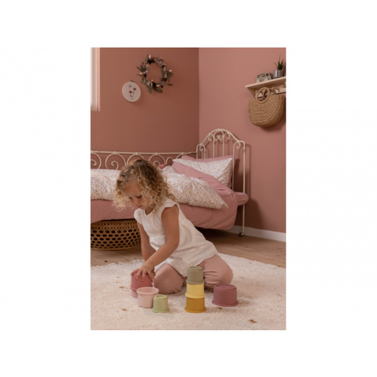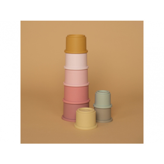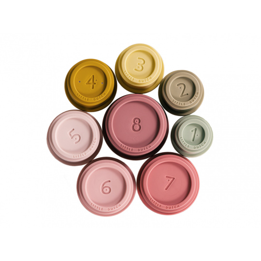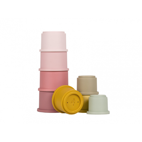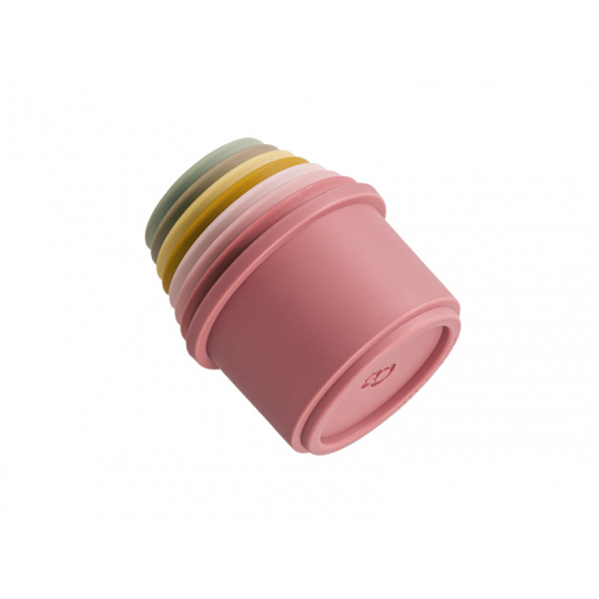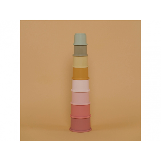 Sada kelímků v krásných pastelových barvách nabízí mnoho možností pro hraní doma, v koupeli i venku na pískovišti. Co může být zábavnější, než postavit vysokou věž a pak ji jedním mávnutím ruky zbořit! Kelímky mají na spodní straně čísla 1 - 8 a můžete je tak využít ve starším věku dítěte i k učení rozpoznávání číslic a počítání. Celková výška věže z kelímků je 43 cm. Vhodné pro děti od 12 měsíců.