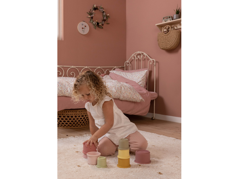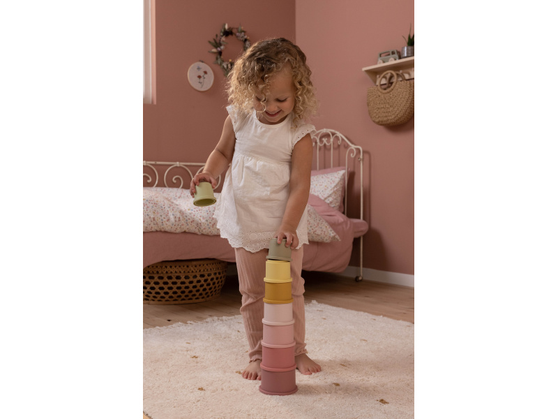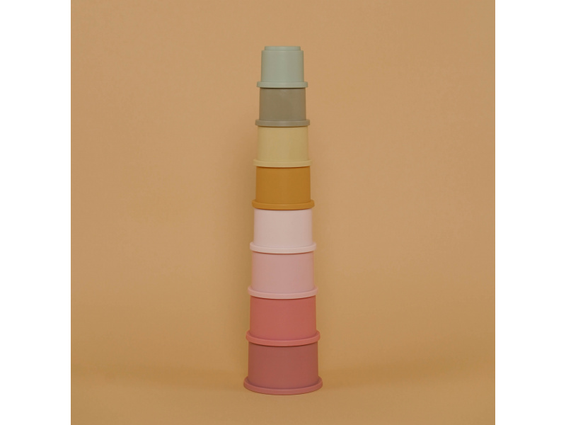 Sada kelímků v krásných pastelových barvách nabízí mnoho možností pro hraní doma, v koupeli i venku na pískovišti. Co může být zábavnější, než postavit vysokou věž a pak ji jedním mávnutím ruky zbořit! Kelímky mají na spodní straně čísla 1 - 8 a můžete je tak využít ve starším věku dítěte i k učení rozpoznávání číslic a počítání. Celková výška věže z kelímků je 43 cm. Vhodné pro děti od 12 měsíců.