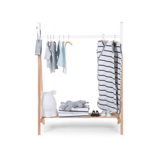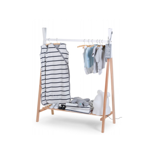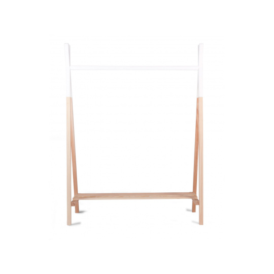Dřevěný stojan na oblečení Tipi je ideální pro rychlé a pohodlné ukládání oblečení vašeho dítěte. Stojan má ve spodní části polici a nahoře závěsnou tyč. Rozměry: 107 x 48 x 137 cm Materiál: buk