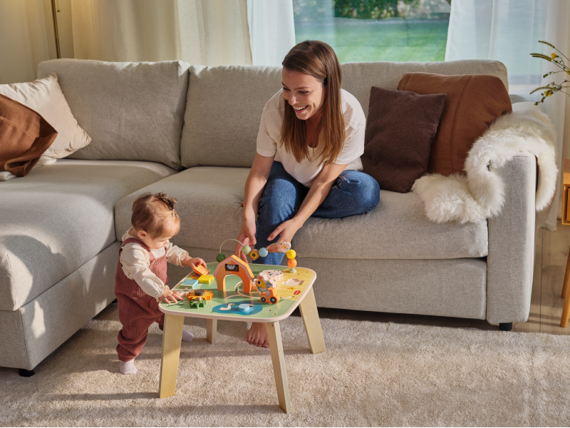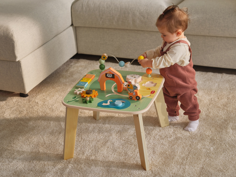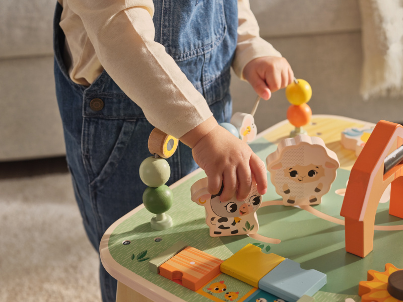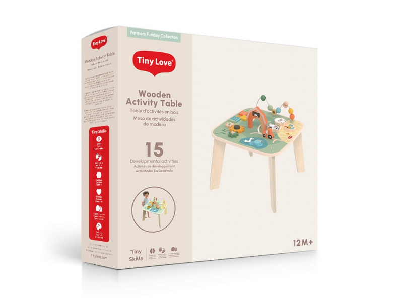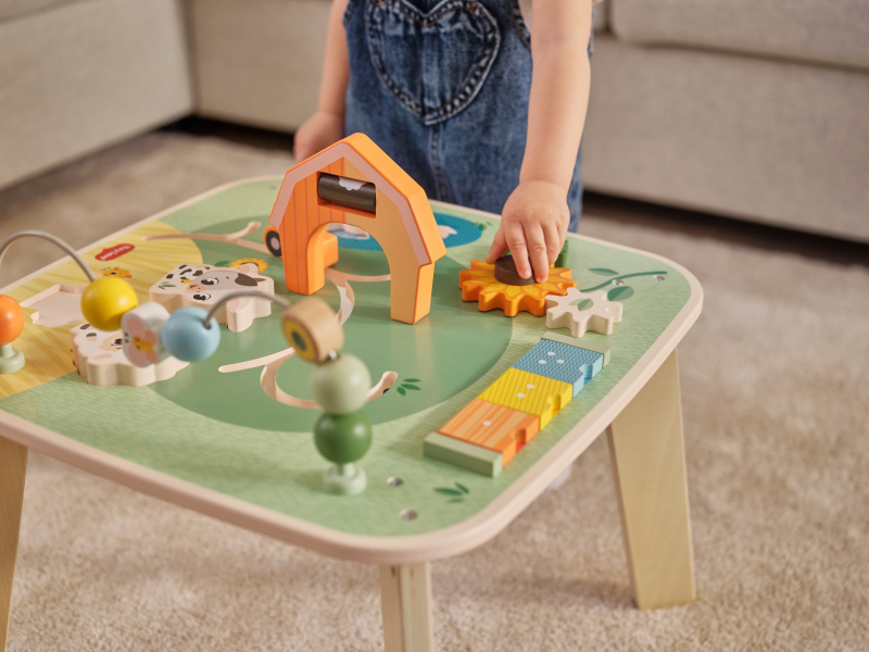 Dřevěný stolek s aktivitami Tiny Love je skvělá hračka pro malé objevitele, která nabízí spoustu možností, jak si hrát, zkoumat a učit se. Na jednom místě kombinuje různé pohyblivé prvky, vkládání a skrytá překvapení – dítě si tak přirozeně trénuje jemnou motoriku, koordinaci ruka–oko, soustředění i první logické uvažování. Stolek s krásnými motivy ze života na farmě podporuje samostatnou hru, ale zároveň je ideální i pro společné chvíle s rodiči nebo sourozenci. Stolek pomáhá rozvíjet jemnou motoriku, jednotlivé smysly, emoční inteligenci i kreativitu dítěte. Vyrobeno z kvalitního dřeva z odpovědně obhospodařovaných lesů. Rozměry (Š × V × H): 46,2 × 43 × 46,2 cm Vhodné pro děti od 12 měsíců.