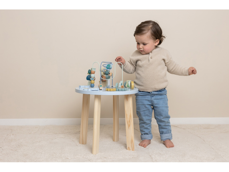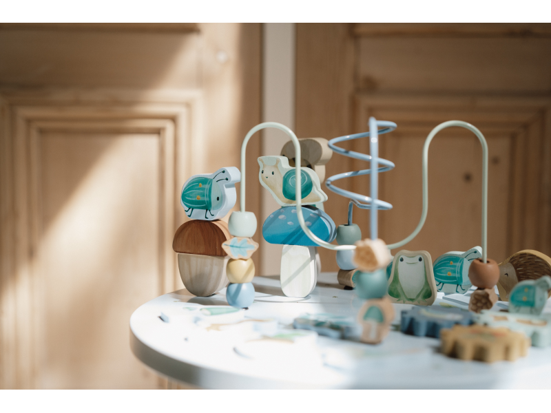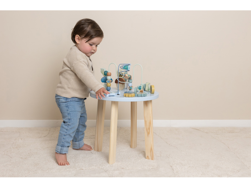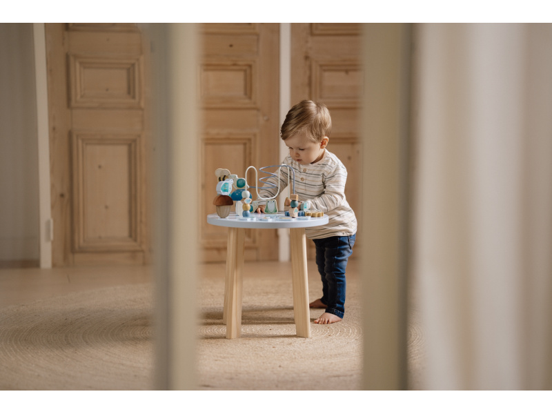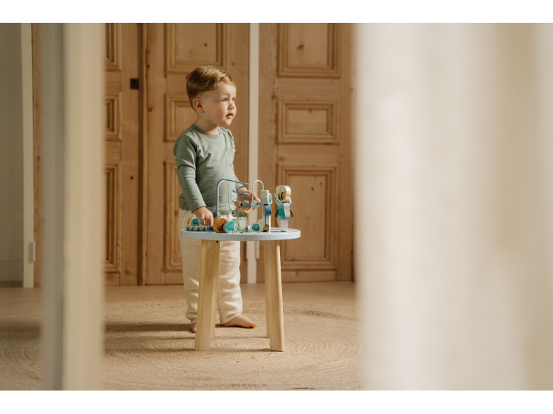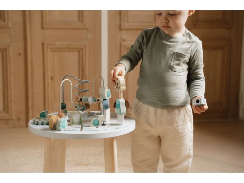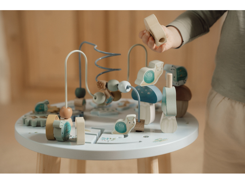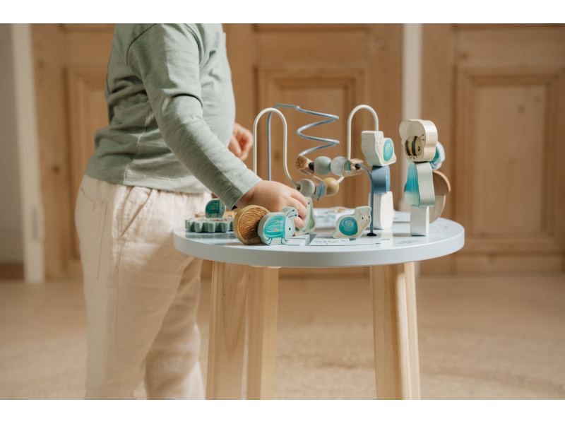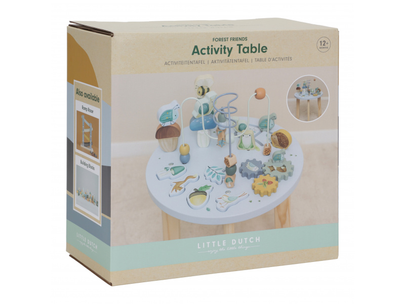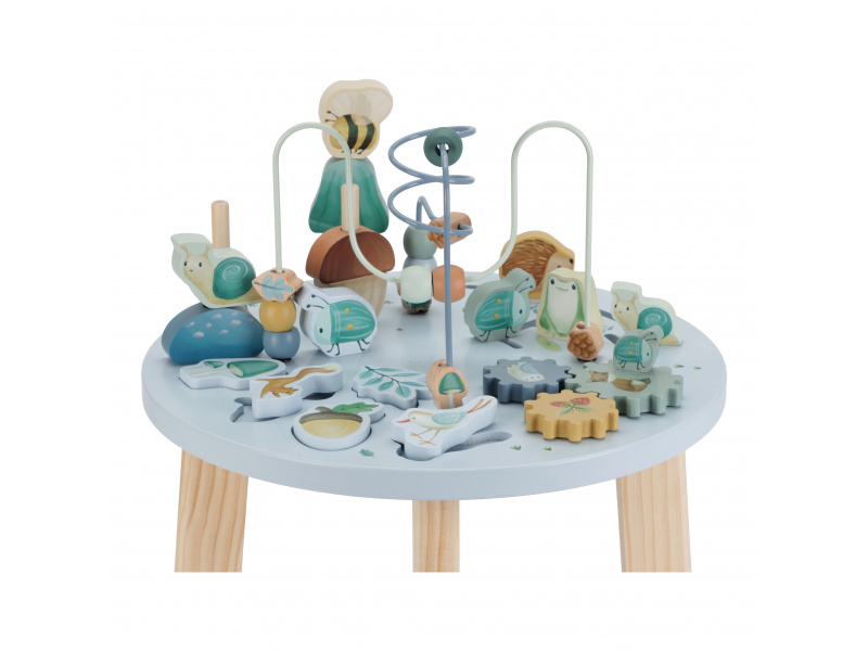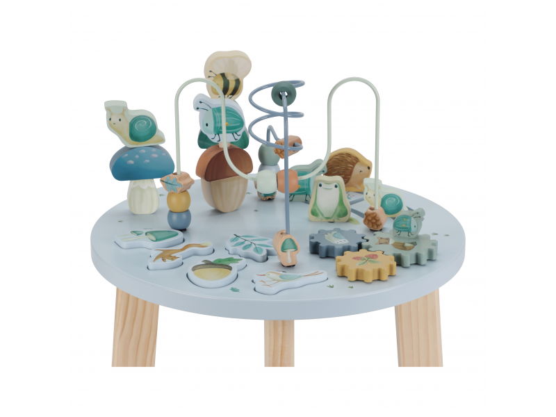 Dřevěný multifunkční stolek v krásném a vysoce kvalitním provedení nabízí vašemu dítěti množství různorodých aktivit, které dítě zabaví a zároveň pomáhají rozvíjet jeho jemnou motoriku i jednotlivé smysly. Lákat dítě ke zkoumání budou pohyblivé, posuvné i odnímatelné dřevěné díly v podobě ježka, šneka, žáby, houbiček a dalších motivů ze života v lese. Díky stabilnímu dřevěnému provedení je stolek vhodný i pro děti, které hledají oporu při prvních krůčcích. Stolek je součástí designové kolekce hraček a doplňků Little Dutch Forest Friends inspirované životem v lese. Vyrobeno z dřeva certifikovaného FSC. Rozměry: 39 x 39 x 54 cm Vhodné pro děti od 12 měsíců.