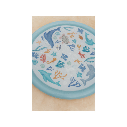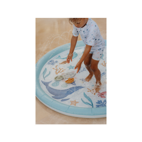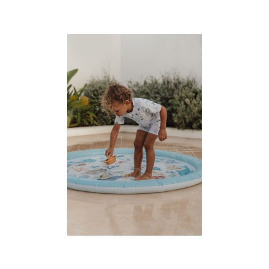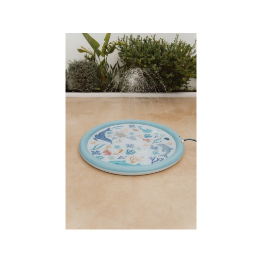 Originální hrací podložka s vodotryskem, který vytvoříte jednoduše připojením na zahradní hadici s pomocí přiložené spojky. Podložka s krásným potiskem motivů ze života pod mořskou hladinou je ideální doplněk na zahradu během horkých letních dní. Děti si budou užívat běhání přes stříkající vodotrysk i hraní si s vodou na podložce, která funguje jako mělký bazének. Podložka je součástí designové kolekce Little Dutch Ocean Dreams. Průměr: 150 cm Vhodné pro děti od 2 let.