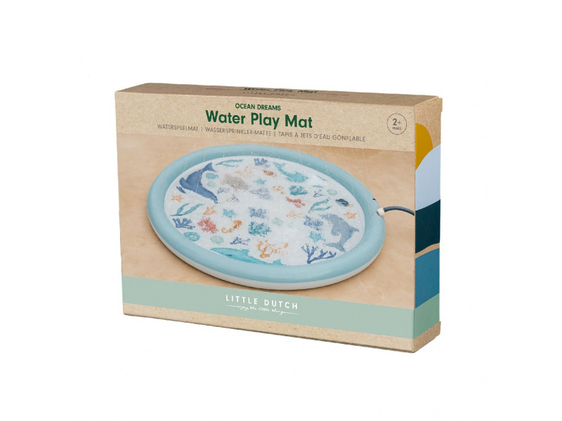 Originální hrací podložka s vodotryskem, který vytvoříte jednoduše připojením na zahradní hadici s pomocí přiložené spojky. Podložka s krásným potiskem motivů ze života pod mořskou hladinou je ideální doplněk na zahradu během horkých letních dní. Děti si budou užívat běhání přes stříkající vodotrysk i hraní si s vodou na podložce, která funguje jako mělký bazének. Podložka je součástí designové kolekce Little Dutch Ocean Dreams. Průměr: 150 cm Vhodné pro děti od 2 let.