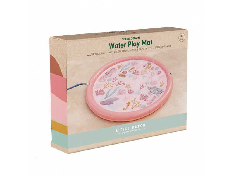 Originální hrací podložka s vodotryskem, který vytvoříte jednoduše připojením na zahradní hadici s pomocí přiložené spojky. Podložka s krásným potiskem motivů ze života pod mořskou hladinou je ideální doplněk na zahradu během horkých letních dní. Děti si budou užívat běhání přes stříkající vodotrysk i hraní si s vodou na podložce, která funguje jako mělký bazének. Podložka je součástí designové kolekce Little Dutch Ocean Dreams. Průměr: 150 cm Vhodné pro děti od 2 let.