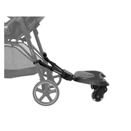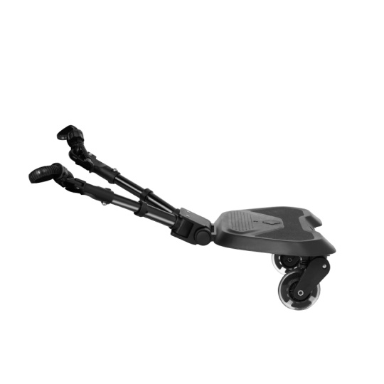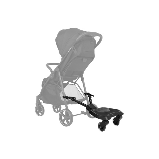 Praktické a flexibilní stupátko ke kočárku je ideálním řešením pro rodiče s více dětmi. Umožňuje snadnou a bezpečnou přepravu druhého dítěte. Vhodné pro děti od 15 měsíců do 20 kg Univerzální design vhodný pro různé typy kočárků Snadná instalace s pomocí přiložených adaptérů Otočná kola o 360° s odpružením a funkcí snadného uvolnění Nastavitelné adaptéry se třemi nastaveními délky a osmi nastaveními výšky Protiskluzová plocha pro bezpečný nášlap Přídavný popruh pro upevnění k rukojeti kočárku, pokud není stupátko používáno Rozměry a hmotnost: Rozměry: 41 × 63 × 18 cm Hmotnost: 2,1 kg