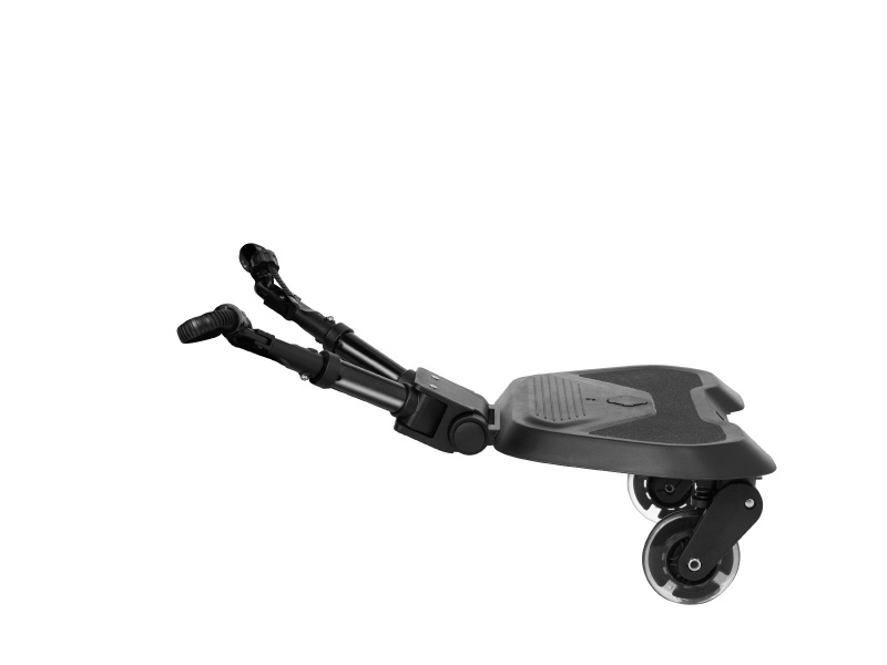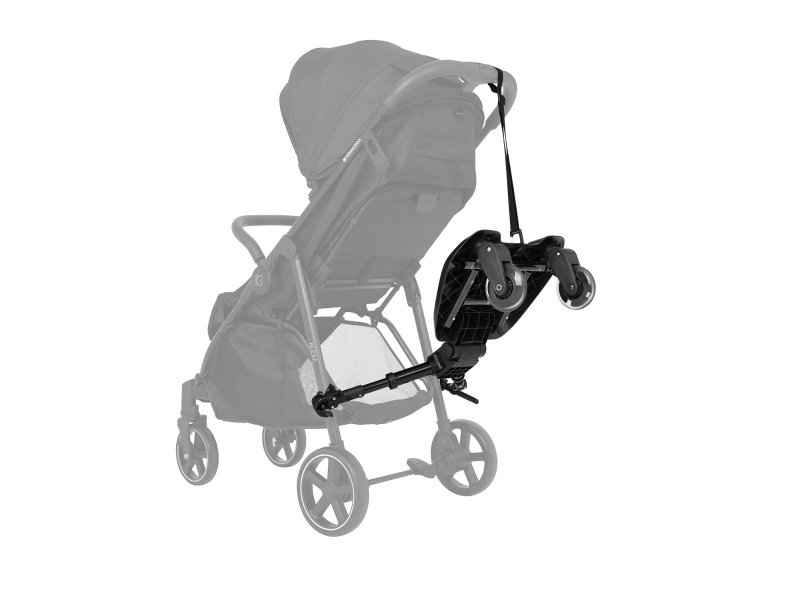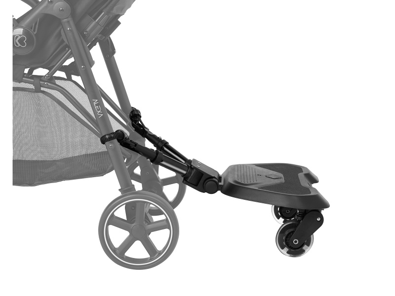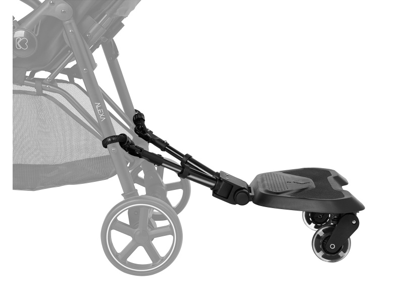 Praktické a flexibilní stupátko ke kočárku je ideálním řešením pro rodiče s více dětmi. Umožňuje snadnou a bezpečnou přepravu druhého dítěte. Vhodné pro děti od 15 měsíců do 20 kg Univerzální design vhodný pro různé typy kočárků Snadná instalace s pomocí přiložených adaptérů Otočná kola o 360° s odpružením a funkcí snadného uvolnění Nastavitelné adaptéry se třemi nastaveními délky a osmi nastaveními výšky Protiskluzová plocha pro bezpečný nášlap Přídavný popruh pro upevnění k rukojeti kočárku, pokud není stupátko používáno Rozměry a hmotnost: Rozměry: 41 × 63 × 18 cm Hmotnost: 2,1 kg