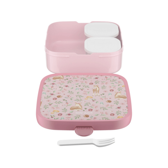 Velký svačinový box má uvnitř dvě vyjímatelné krabičky s víčkem pro oddělení jednotlivých částí uložené svačinky. Součástí boxu je i malá vidlička, která je ideální pro napichování kousků ovoce či zeleniny. Zacvakávací uzávěr je zárukou bezpečného uzavření obsahu boxu. Box je součástí designové řady hraček a doplňků Little Dutch Fairy Garden, inspirované životem na zahradě. Materiál: PP, PE Rozměry: 18,4 x 18,2 x 6,5 cm Objem: 1300 ml Vhodné do myčky a pro ohřívání v mikrovlnce (bez víčka).