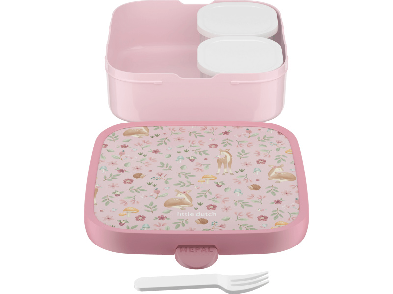 Velký svačinový box má uvnitř dvě vyjímatelné krabičky s víčkem pro oddělení jednotlivých částí uložené svačinky. Součástí boxu je i malá vidlička, která je ideální pro napichování kousků ovoce či zeleniny. Zacvakávací uzávěr je zárukou bezpečného uzavření obsahu boxu. Box je součástí designové řady hraček a doplňků Little Dutch Fairy Garden, inspirované životem na zahradě. Materiál: PP, PE Rozměry: 18,4 x 18,2 x 6,5 cm Objem: 1300 ml Vhodné do myčky a pro ohřívání v mikrovlnce (bez víčka).
