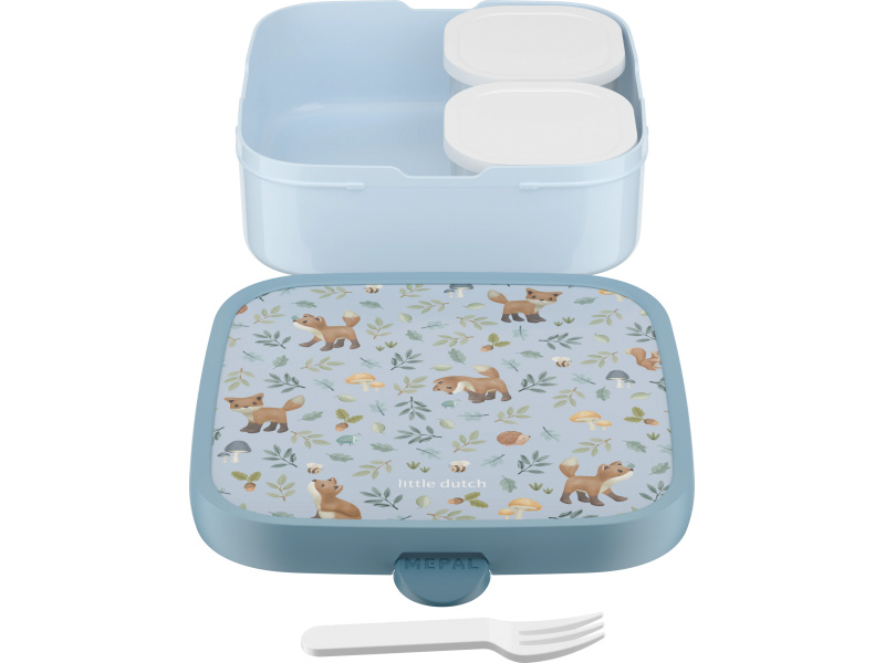 Velký svačinový box má uvnitř dvě vyjímatelné krabičky s víčkem pro oddělení jednotlivých částí uložené svačinky. Součástí boxu je i malá vidlička, která je ideální pro napichování kousků ovoce či zeleniny. Zacvakávací uzávěr je zárukou bezpečného uzavření obsahu boxu. Box je součástí designové řady hraček a doplňků Little Dutch Forest Friends, inspirované životem v lese. Materiál: PP, PE Rozměry: 18,4 x 18,2 x 6,5 cm Objem: 1300 ml Vhodné do myčky a pro ohřívání v mikrovlnce (bez víčka).