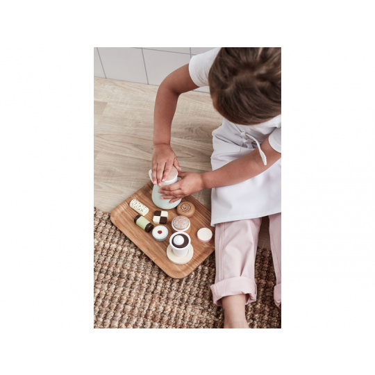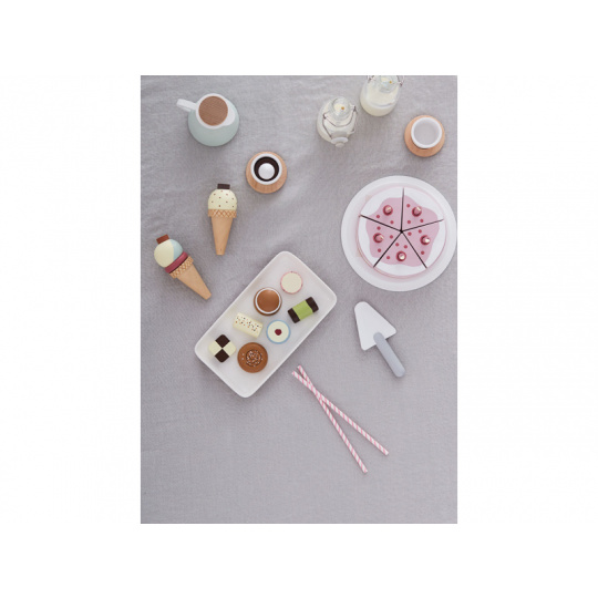 Sada 7 typických švědských zákusků v dřevěném provedení pro dětskou párty či odpolední čaj. Zákusky jsou součástí ucelené kolekce dřevěných hraček Kids Concept Bistro. Vhodné pro děti od 3 let.