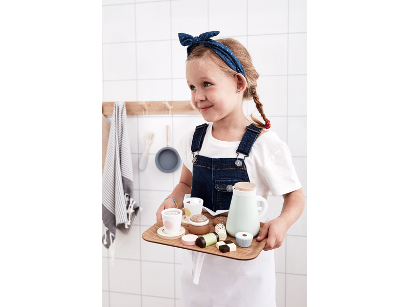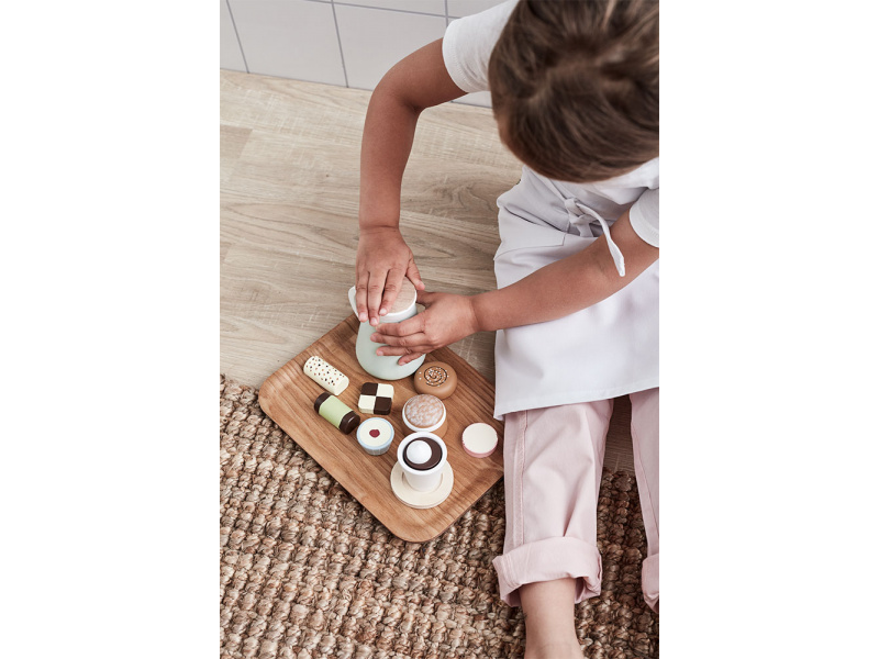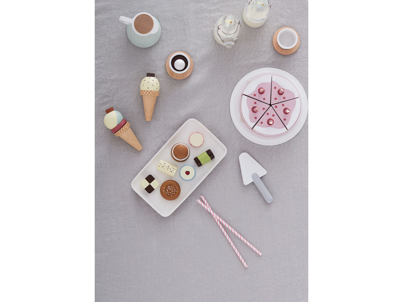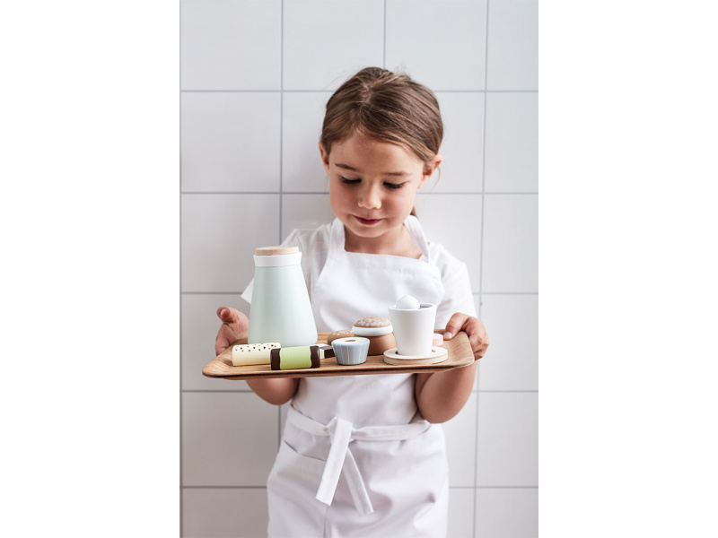 Sada 7 typických švědských zákusků v dřevěném provedení pro dětskou párty či odpolední čaj. Zákusky jsou součástí ucelené kolekce dřevěných hraček Kids Concept Bistro. Vhodné pro děti od 3 let.