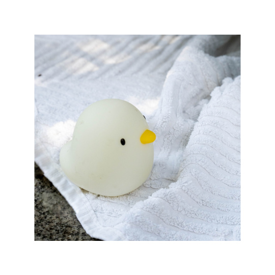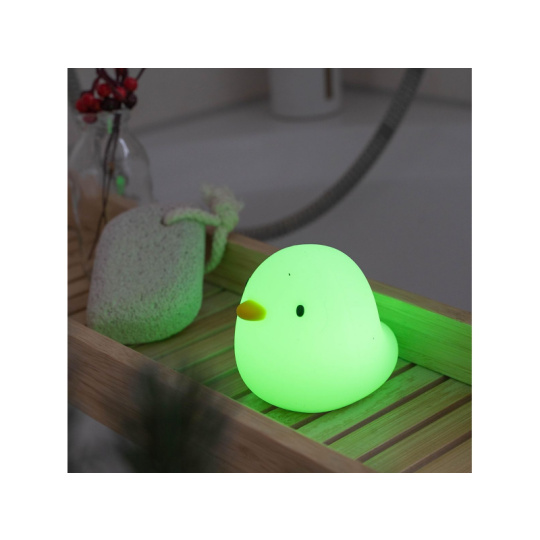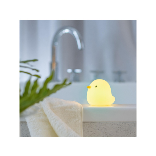 Světlo do vany MegaLight Swimmy Duck v podobě roztomilé kačenky poskytne vašemu dítěti zábavu během koupání ve vaně. Díky svému designu bude i krásnou dekorací v dětském pokoji. LED světlo s nabíjecí baterií 7 RGB barev snadné ovládání dotykem automatické vypnutí po 5 minutách bez doteku životnost baterie 25 hodin nabíjení s pomocí přiloženého USB-C kabelu testováno v souladu se směrnicemi o hračkách Složení: ABS, polykarbonát, silikon Rozměry: 84 x 73 x 73 mm Vhodné pro děti od 3 let.