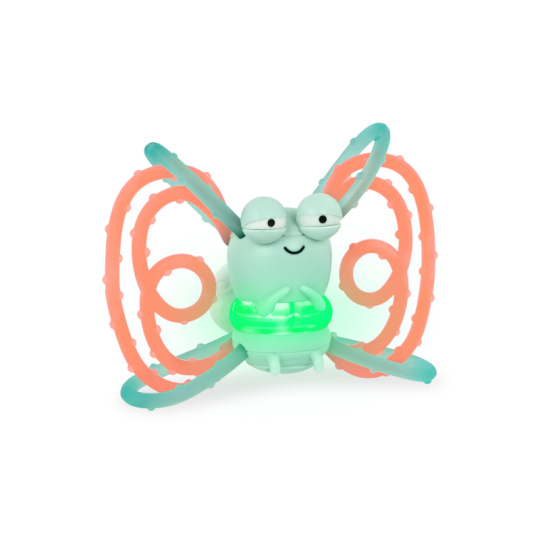 Jemně svítící kousátko v podobě rošťácké světlušky je ideálním parťákem pro první objevování i uklidnění citlivých dásní. Kousátko se rozsvítí po jemném zatřesení. Texturované kroužky jsou bezpečné pro kousání, snadno se uchopí drobnými ručičkami a lákají k dalšímu zkoumání. Vyměnitelné baterie 3x AG9 (LR45) jsou součástí. Rozměry: 10,5 × 4,6 × 9,9 cm Vhodné pro děti od 3 měsíců.