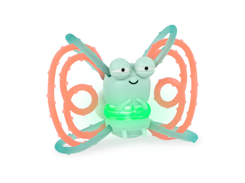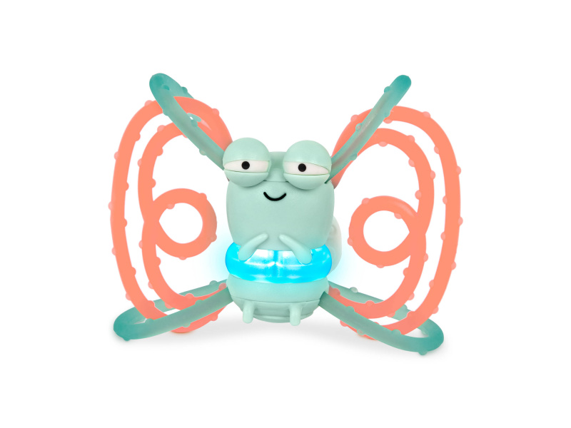 Jemně svítící kousátko v podobě rošťácké světlušky je ideálním parťákem pro první objevování i uklidnění citlivých dásní. Kousátko se rozsvítí po jemném zatřesení. Texturované kroužky jsou bezpečné pro kousání, snadno se uchopí drobnými ručičkami a lákají k dalšímu zkoumání. Vyměnitelné baterie 3x AG9 (LR45) jsou součástí. Rozměry: 10,5 × 4,6 × 9,9 cm Vhodné pro děti od 3 měsíců.