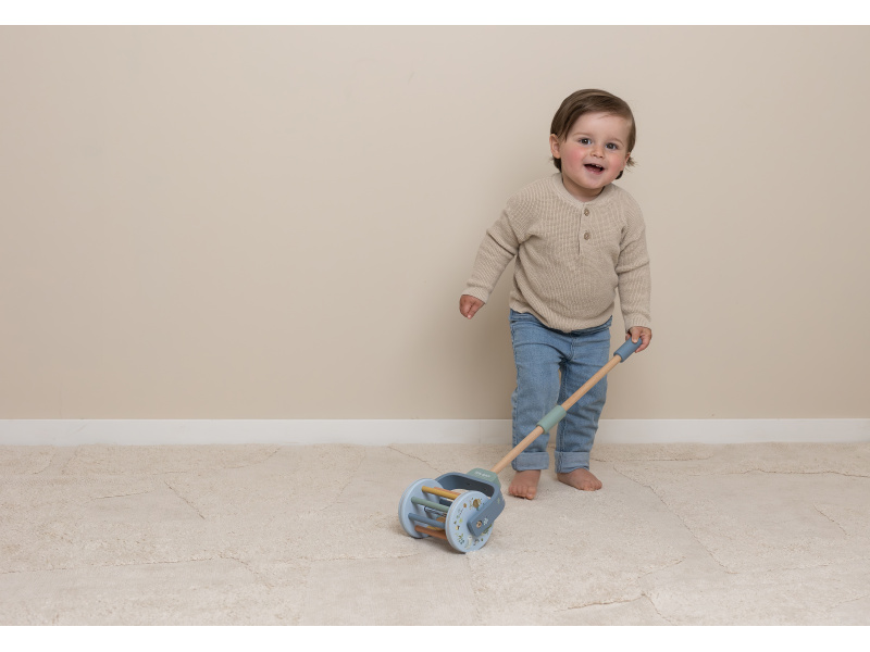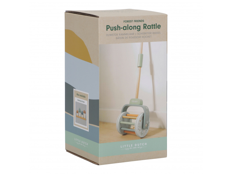 Dřevěný chrasticí váleček na tyči v krásném dřevěném provedení láká dítě, aby jej tlačilo před sebou. Míčky uvnitř válečku při pohybu chrastí, dítě je motivováno k samostatné chůzi a zároveň mu držení hračky dodává při chůzi pocit větší jistoty. Gumové proužky na obvodu válečku chrání podlahu před poškrábáním. Hračka je součástí designové kolekce hraček a doplňků Little Dutch Forest Friends inspirované životem v lese. Vyrobeno z dřeva certifikovaného FSC. Rozměry: 15,5 x 10 x 59 cm Vhodné pro děti od 18 měsíců.