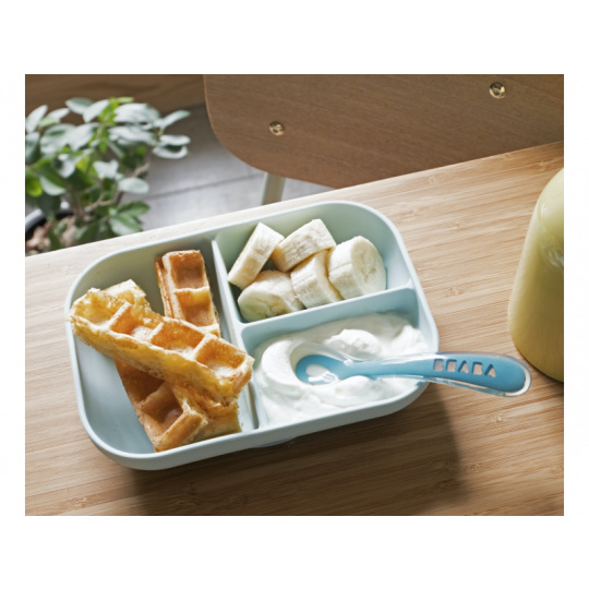 Talíř silikonový dělený s přísavkou + lžička Blue