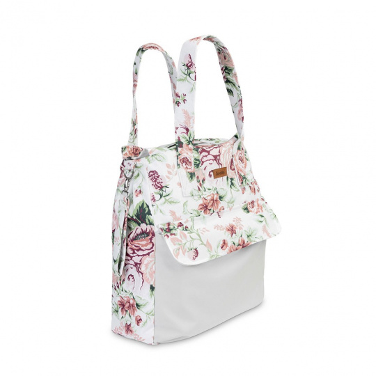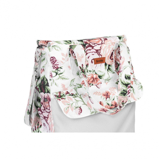 Velká, prostorná taška pro mámu, ideální na procházku, nákupy nebo do nemocnice. Díky své velikosti pojme veškeré potřebné příslušenství. Přední kapsa uzavřená diskrétním magnetem pojme všechny věci, které by měly být po ruce. Vnitřek tašky je z polyesterové podšívky. Nepostradatelným prvkem tašky jsou odolné barevné uši, díky nimž ji lze zavěsit na kočárek.