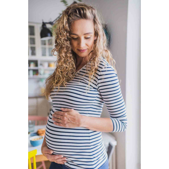 Těhotenské a kojící tričko Milk Shirt milk & love bílo modré pásky