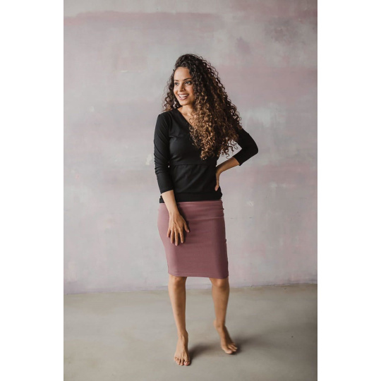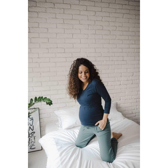 Těhotenské a kojící tričko Milk Shirt milk & love s výstřihem do V. Tričko, které usnadní kojení je vyrobeno z kvalitní bavlny s přídavkem elastanu, díky kterému se nevytahuje a po vyprání se vrací do původního tvaru. Proto vypadá skvěle i po těhotenství a lze ho používat i při kojení. Jednoduché otevírání "smyčkou" umožňuje velmi rychle nakrmit hladové miminko. Správný střih, který zakryje drobné nedostatky postavy, která se ještě nevzpamatovala z těhotenství a dostatečně dlouhý, aby zakryl záda. Elastická látka pojme i těhotenské bříško. Při výběru velikosti se řiďte velikostí, kterou aktuálně nosíte. Oblečení je vyrobeno z elastické látky, proto se přizpůsobí velikosti těhotenského bříška a měnícím se tvarům těla. Oblečení se měří naplocho, takže rozměry uvedené tabulce-(poslední fotografie) nejlépe porovnáte s rozměry oblečení, které vám aktuálně sedí. Nejkvalitnější prodyšné látky, které prošly přísnými testy Oeko-Tex Standard 100. Díky nim je oblečení měkké a příjemné na dotek pro maminku i dítě. Složení: 92% bavlna, 8% elastan. Délka rukávů 7/8.