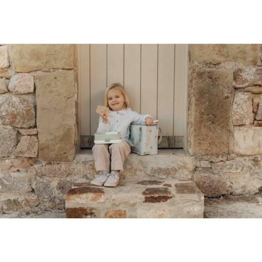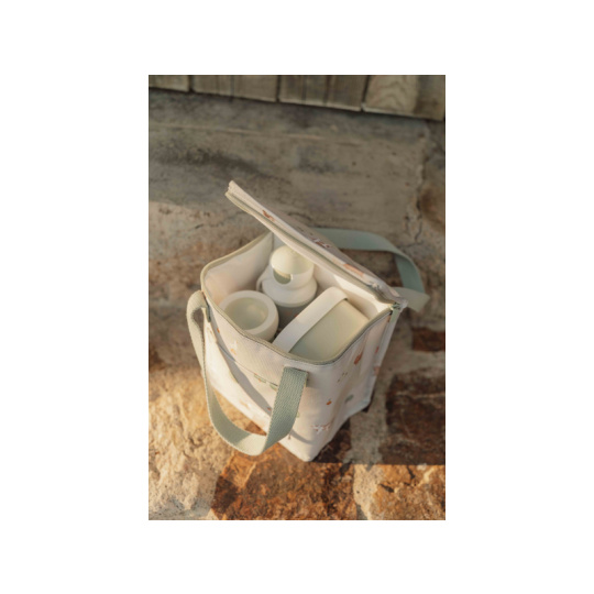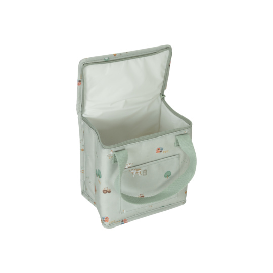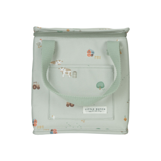 Termoizolační pouzdro s držadly pro snadné přenášení je ideální na výlety i do školy. Termoizolační vrstva pomůže uchovat jídlo déle v požadované teplotě. Pouzdro nabízí dostatek prostoru pro svačinu i nápoj. Na přední straně pouzdra najdete kapsičku. Pouzdro je součástí designové kolekce Little Dutch Farma, ve které najdete ložní prádlo, dekorativní doplňky do dětského pokoje, dřevěné a plyšové hračky i jídelní doplňky pro dětské stolování. Rozměry: 21,5 x 20 x 12 cm