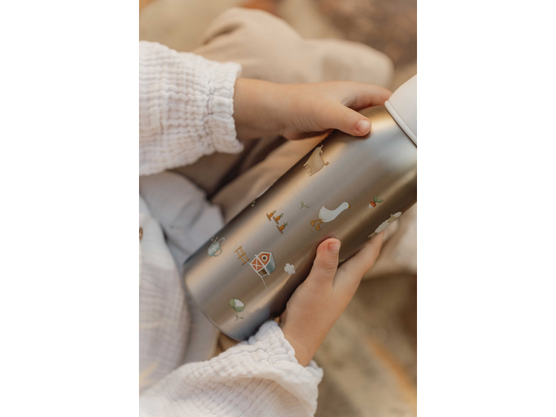 Termoláhev Little Dutch je vyrobena z vysoce kvalitní dvoustěnné oceli a udrží nápoj déle teplý (až 4 hodiny) nebo studený (až 12 hodin). Je tak vhodná pro zahřátí teplým nápojem během procházek v zimě a naopak pro osvěžení chladným nápojem během horkých letních dní. Zaklapávací pítko s odnímatelným brčkem umožňuje snadné pití bez nutnosti naklánění láhve. Bez brčka je možné láhev používat i pro sycené nápoje. Odnímatelné poutko usnadňuje přenášení. Zaklapnutím pítka je chráněn obsah láhve před vylitím. Termoláhev je součástí designové kolekce Little Dutch Farma, ve které najdete jídelní doplňky pro dětské stolování, ložní prádlo, dekorativní doplňky do dětského pokoje i dřevěné a plyšové hračky. Jednotlivé součásti láhve lze rozebrat pro snadné mytí. Plastové části je možné mýt v myčce, nerezové tělo láhve je pro udržení dlouhé životnosti doporučeno mýt ručně. Objem: 350 ml Rozměry: 20,2 x 6,5 x 7 cm Hmotnost: 310 g Složení: nerezová ocel, PP Neobsahuje BPA.