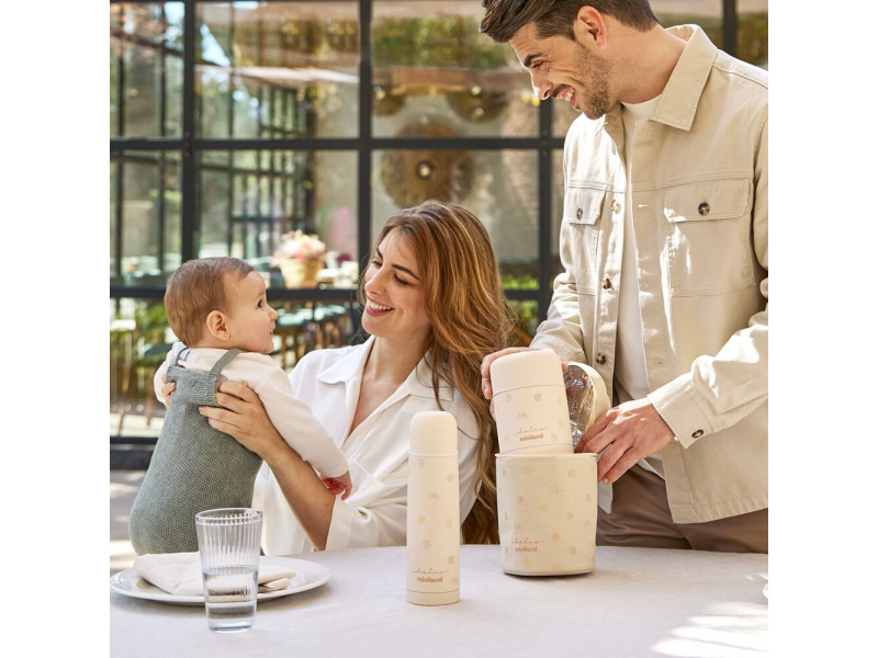 Vakuová termoska Miniland Dolce je vyrobena z vysoce kvalitní dvoustěnné oceli a díky tomu udrží až 24 hodin požadovanou teplotu nápoje. Díky zaklapávacímu ventilu je tekutina v termosce dokonale chráněna před vylitím. Víčko je možné použít i jako kelímek na pití. Termoska je potažena jemným materiálem pro příjemné uchopení. Objem 500 ml. Neobsahuje BPA.