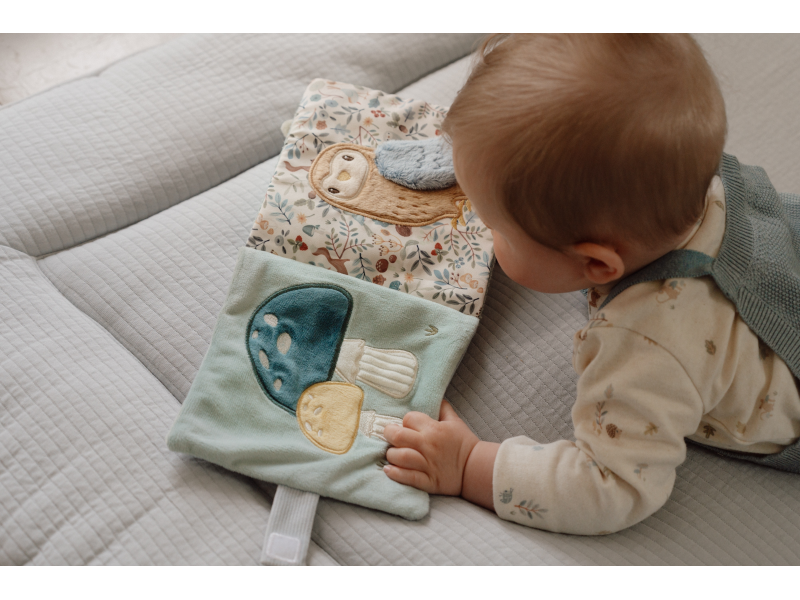 Měkká textilní knížka s krásnými motivy ze života v lese upoutá pozornost vašeho dítěte množstvím aktivit, ukrytých na jednotlivých stránkách. Ke zkoumání a prohlížení lákají šusticí i pískací stránky, různorodé textury nebo např. bezpečné zrcátko. Knížka pomáhá rozvíjet jednotlivé smysly dítěte i koordinaci ruka / oko. Knížka je součástí designové kolekce hraček a doplňků Little Dutch Forest Friends inspirované životem v lese. Rozměry: 18 x 16 x 4,5 cm Vhodné od narození.