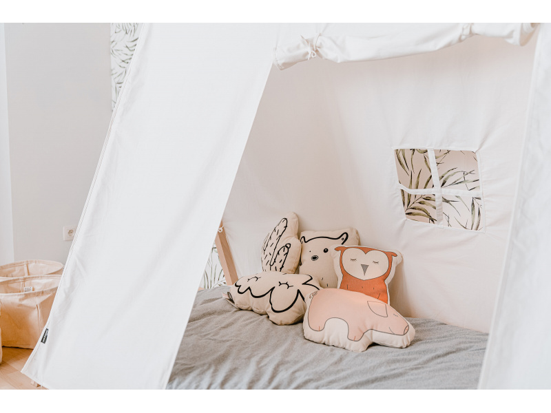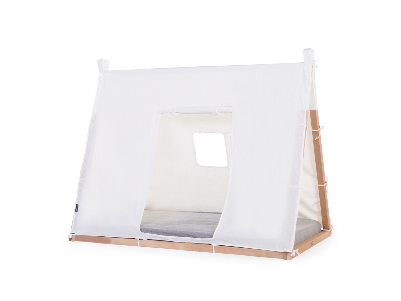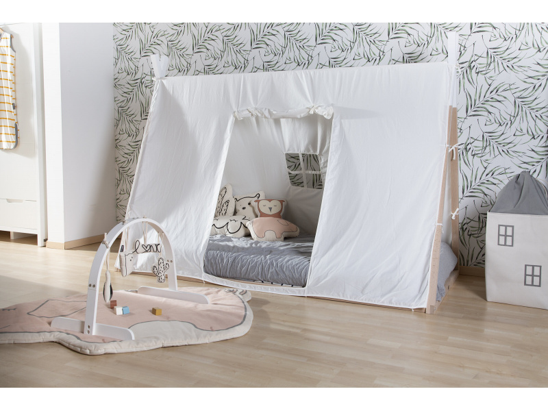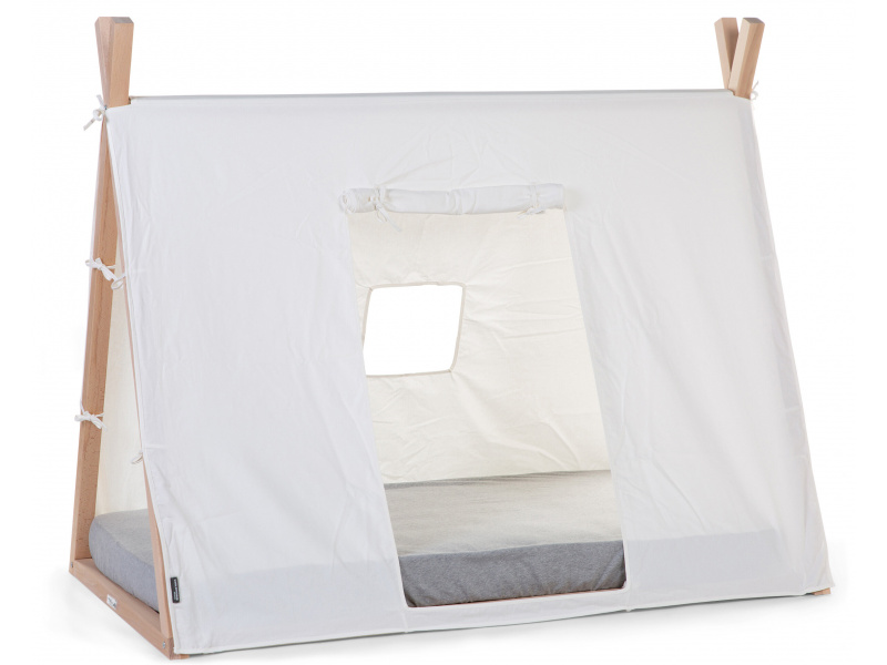 Textilní potah pro dřevěný rám postele Childhome Tipi stan 70x140 cm vám umožní vytvořit vašemu dítěti postýlku v podobě útulného stanu. Dřevěný rám, rošt a matrace se prodávají samostatně.