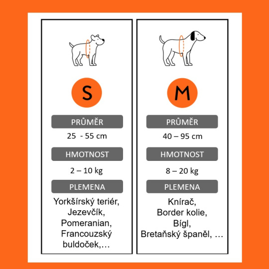 Abyste získali správnou velikost, měli byste změřit průměr trupu svého psa, jak je znázorněno na obrázku, a zvážit svého psa, abyste mohli vybrat mezi velikostmi S a M. Postroj tak bude těsně přiléhat k tělu psa a zajistí bezpečné a pohodlné nošení během jízdy autem.
