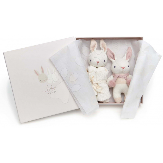 ThreadBear Panenky pletené zajíčci Baby Threads Cream Bunny Gift Set krémové z jemné měkké bavlny v dárkovém balení od 0 měsíců